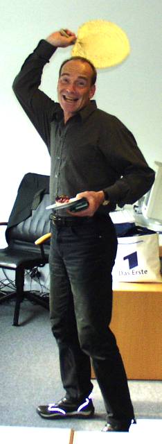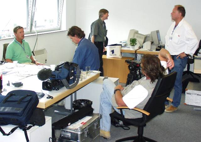 EXPO-Tag Zwei für das ARD Mittagsmagazin! Produktions-Koryphäe Wally gewinnt im Schlaf eine Flasche Sekt, weil er sagte: Sabrina verlässt die Big-Brother-WG. Gabi und Stefan wetten dagegen: John ist so gut wie draussen. Dann schneller Themenwechsel: Wir gehen auf Sendung! Mit dem ARD-Shuttlebus Klemens donnern wir nach dem Mittagsmagazin am Montag ab Richtung Deutscher Pavillon. Die MM-Crew betritt staunend eine neue Welt.