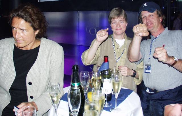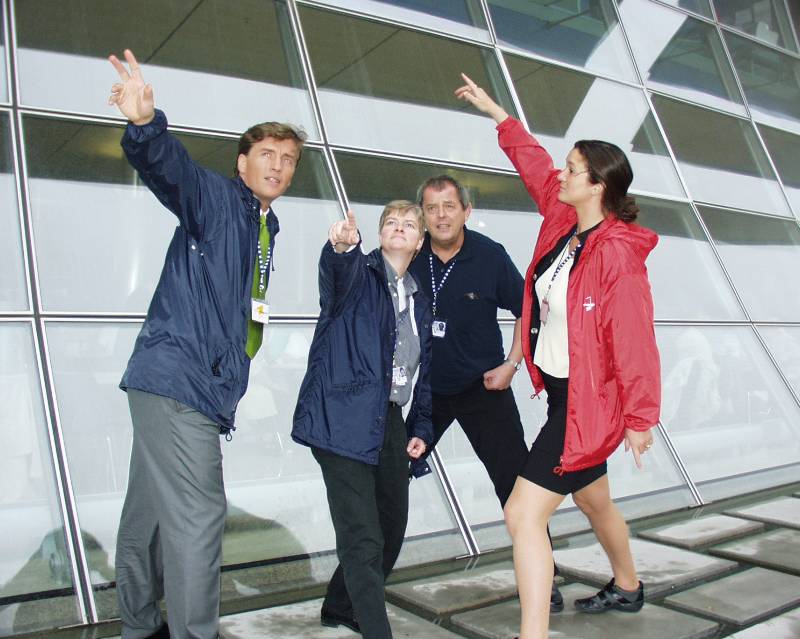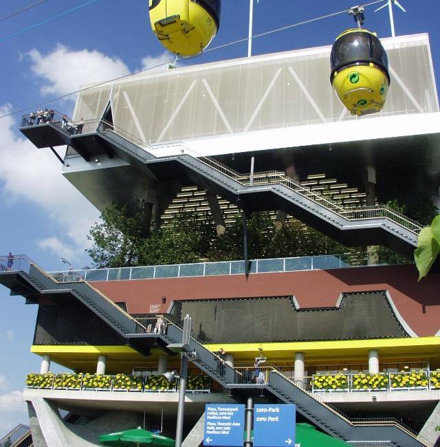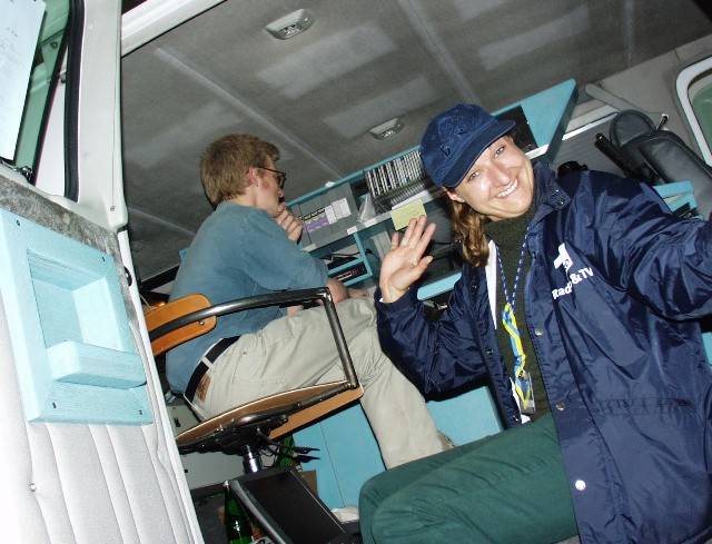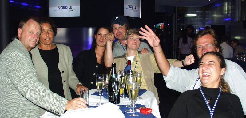 Bergfest. Und die Talfahrt am nächsten Morgen. Halbzeit der EXPO-Außenübertragung: Ein Bergfest ist fällig. Zuerst mit Häppchen und Sektchen, dann Abtanzen bis Mitternacht (zumindest für Moderatoren).