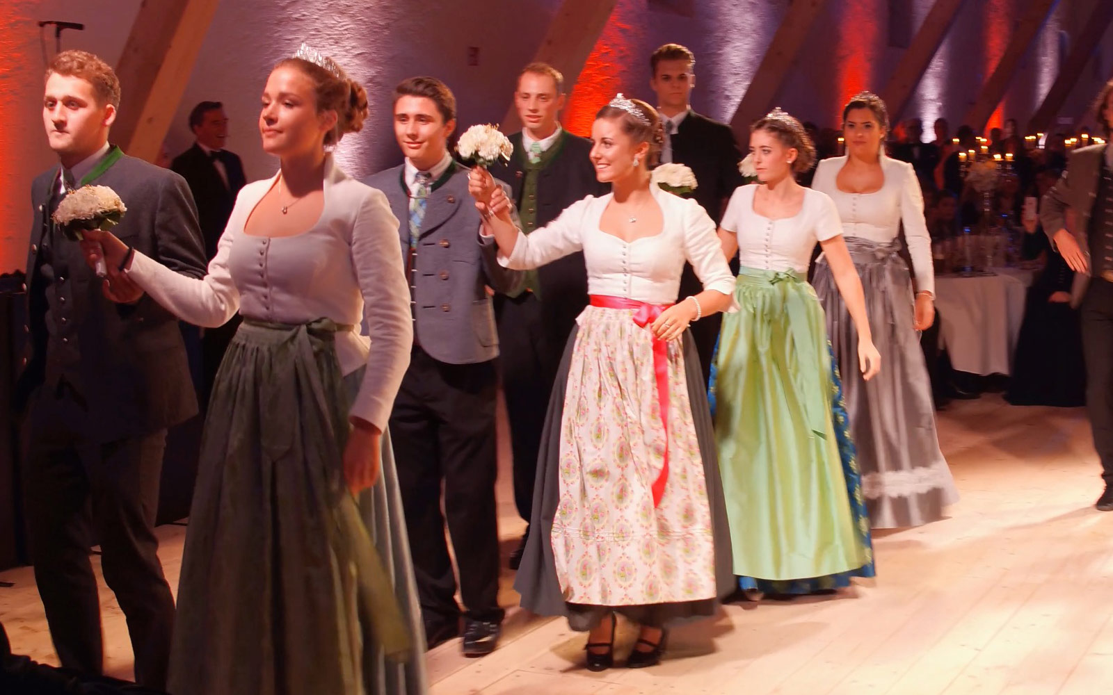 Die Debütantinnen und Debütanten proben für den heißen Moment – natürlich in bayerischer Tracht!
