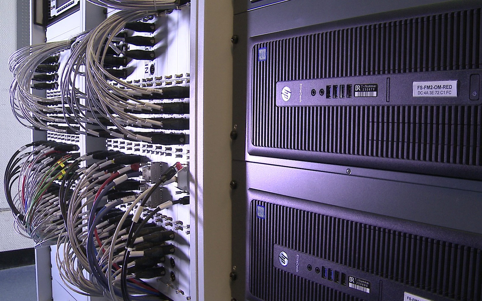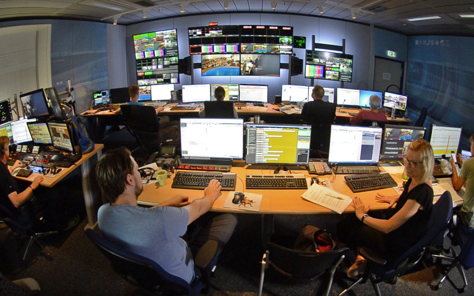 Monitorwände: Bildregie ( fünf 55“ und zwei 42“ Eyevis LCD Displays, vier 24” VTS LCD Displays), Tonregie (zwei 55“ und zwei 42“ Eyevis LCD Displays)