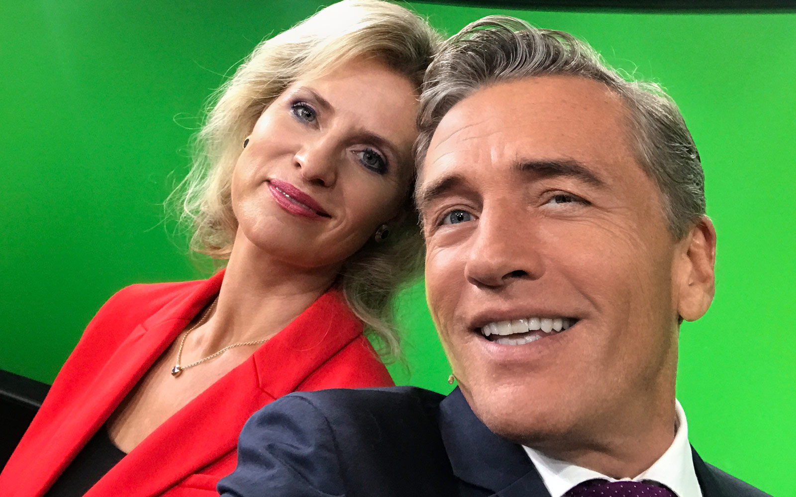 Soooo schöööön, meine grünen Krawatten! Aber – ab jetzt kann ich die Dinger nur noch für Gartenarbeiten anziehen. Wer in einer Greenbox moderiert, darf nix Grünes an sich haben. Denn der Computer rechnet alles Grüne heraus und ersetzt es mit anderen Bildern. Eine grüne Krawatte wäre dann plötzlich durchsichtig – auch nicht Sinn der Sache. Nur: Scheider ist froh, dass es eine Greenbox wurde. Bei einer Bluebox (die gibt es auch) könnte er seinen Kleiderschrank zu 90 Prozent wegwerfen…