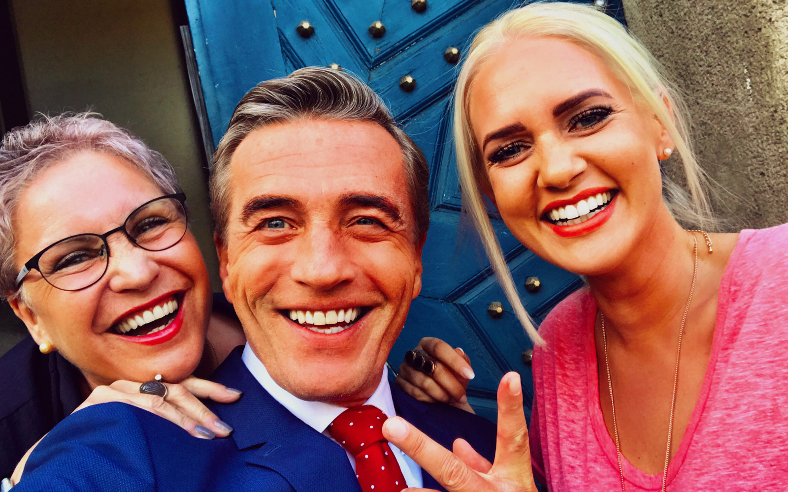 Stefan lernt seine Mitstreiter kennen: Die wunderbare Schauspielerin Katerina Jacob und den Topmodel- und Dschungelcamp-Superstar Sarah Knappik – beide mega-nett und gut drauf.