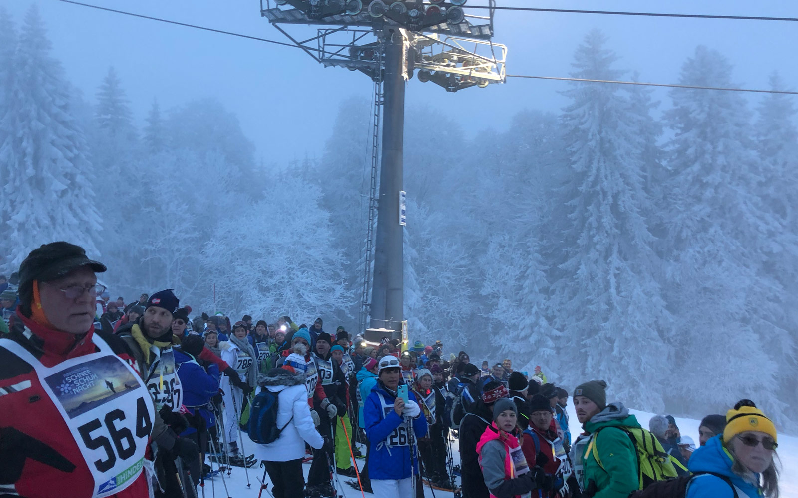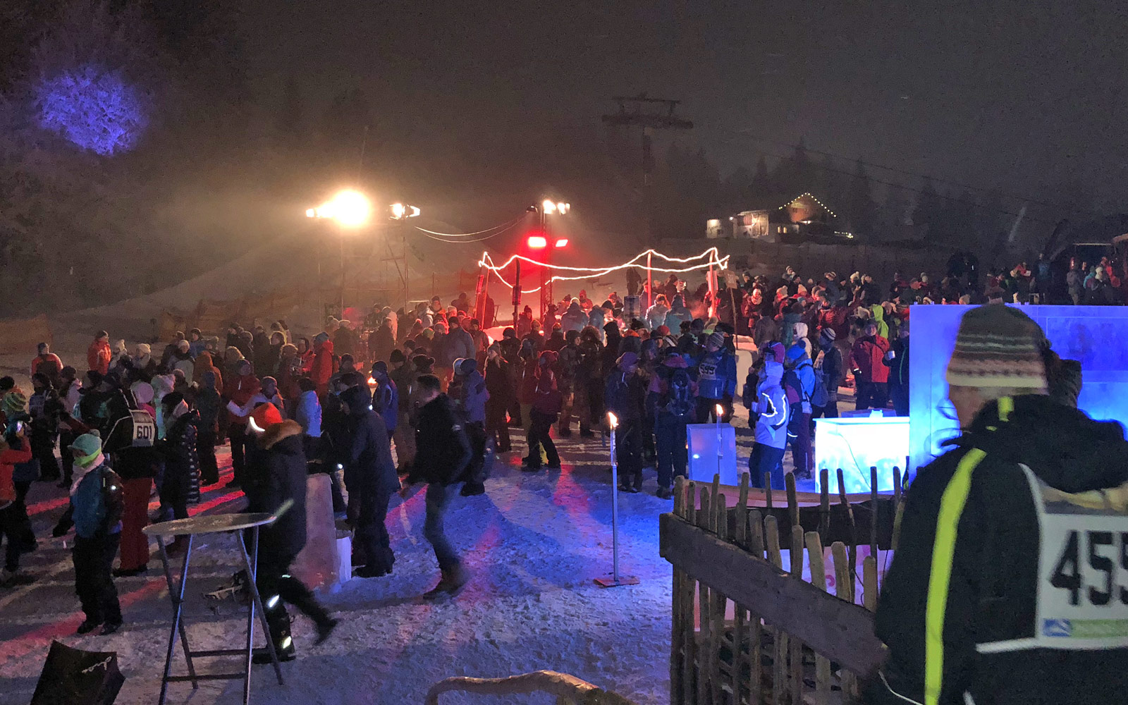 Oh ja, das war ein Tag mit viel Wartezeit – und das bei bis zu minus 12 Grad am Berg. Aber dann um 15.30 Uhr fiel der Startschuss und wir zogen los. Hinauf auf den Berg, hinab und dann um 18:15 Uhr pünktlich ins Ziel. Stefans Mütze sorgt für Furore – eine Leihgabe von Ricky, die Stefans Kopf bei der Kriechkälte rettet…;-)