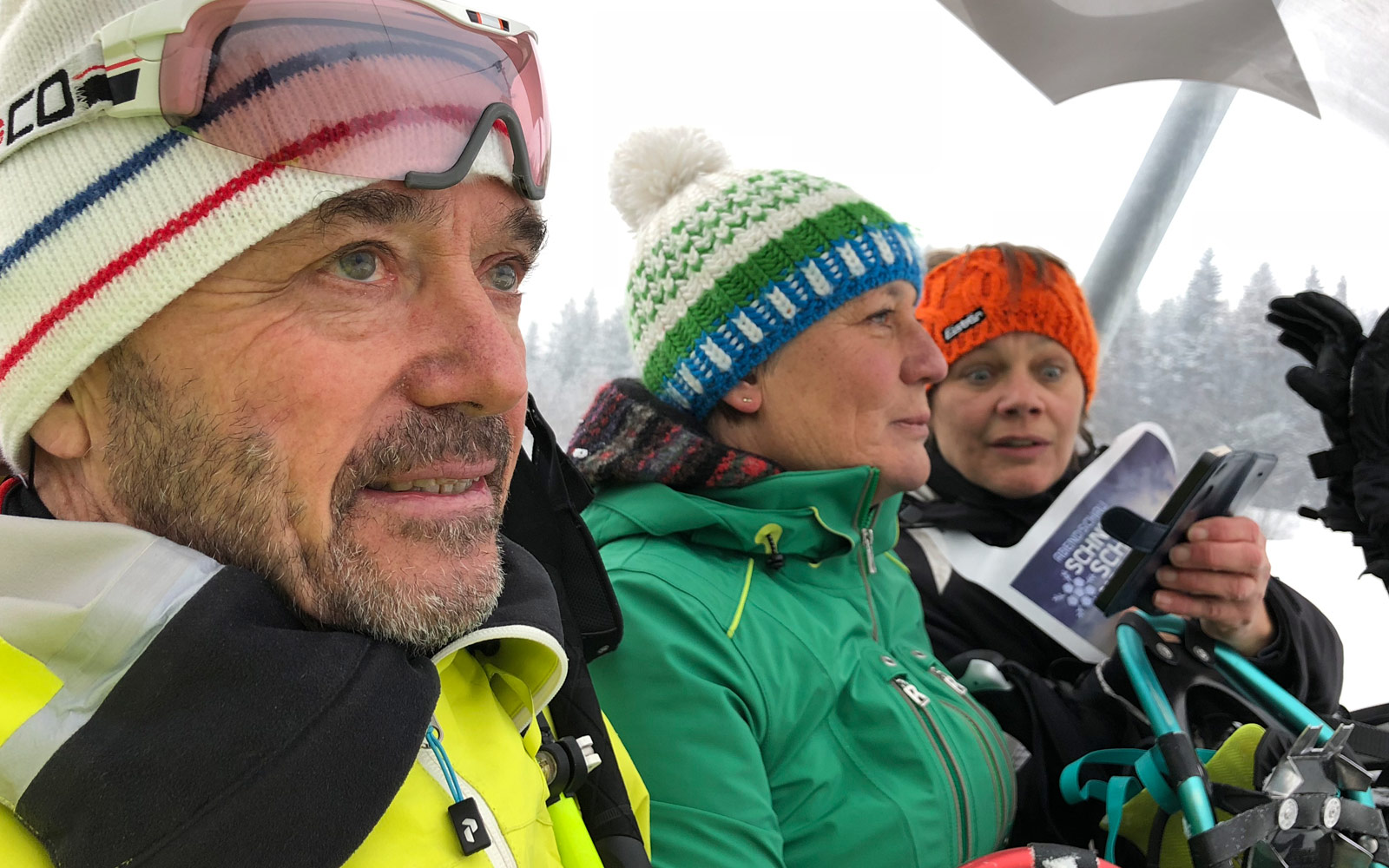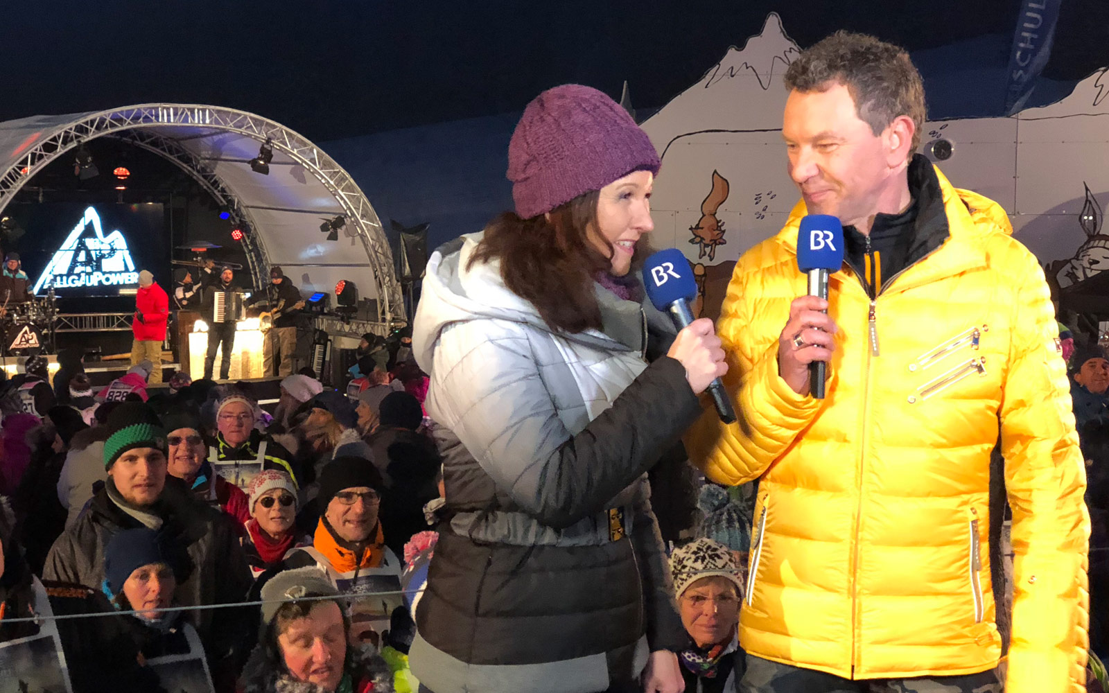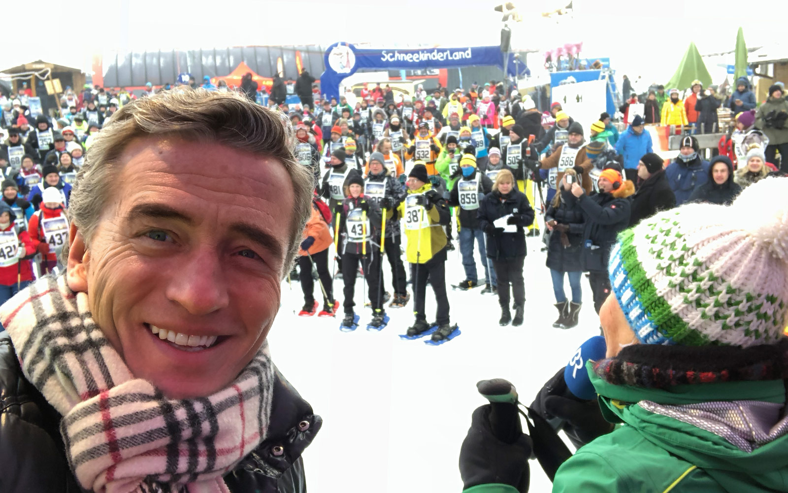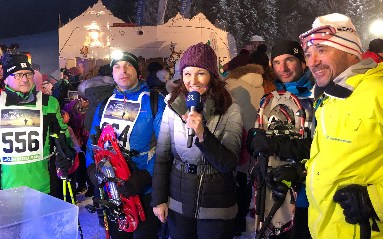 Ja, es war neblig, saukalt und grau in grau: Trotzdem machten sich 800 Menschen auf, um bei der Abendschau-Schneeschuh-Nacht im Oberallgäu in Oberjoch mitzurocken! Respekt! Stefan sprang kurzerhand für eine erkrankte Kollegin ein – und durfte an der Seite von Rosi Mittermaier seine ersten Schritte auf Schneeschuhen wagen…;-) Fazit: Warme Herzen und ein Schuss Glühwein – da hats sogar Spaß gemacht!