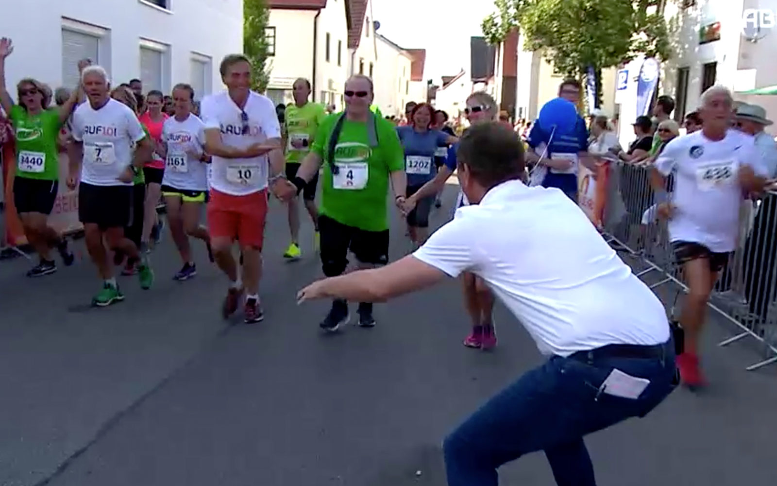 An prominenten Laufpaten dieses Mal auf dem Pfad dabei: Tommy Schwimmer (der Flori in „Dahoam is Dahoam“), Abendschau-Kollege Tom Meiler und eben Nachrichten-Anker Stefan! Das Familienfest kann wieder beginnen – und alle stehen bestens gelaunt und bereit für alles am Start…;-)