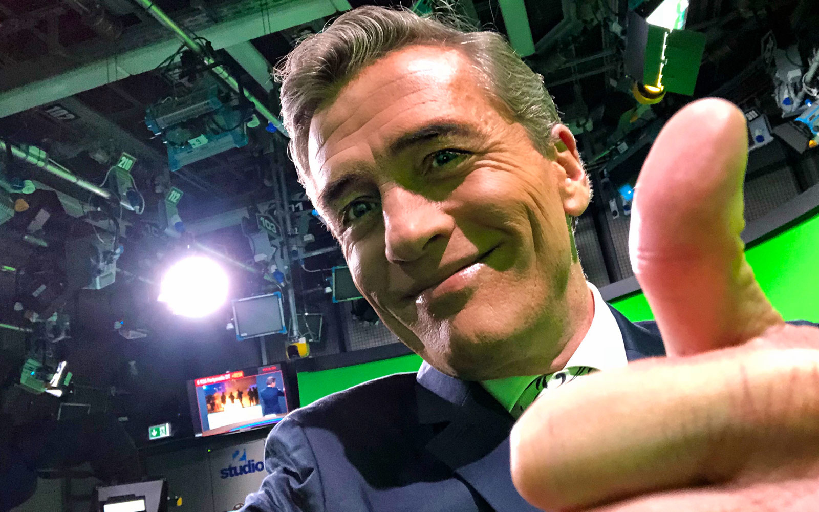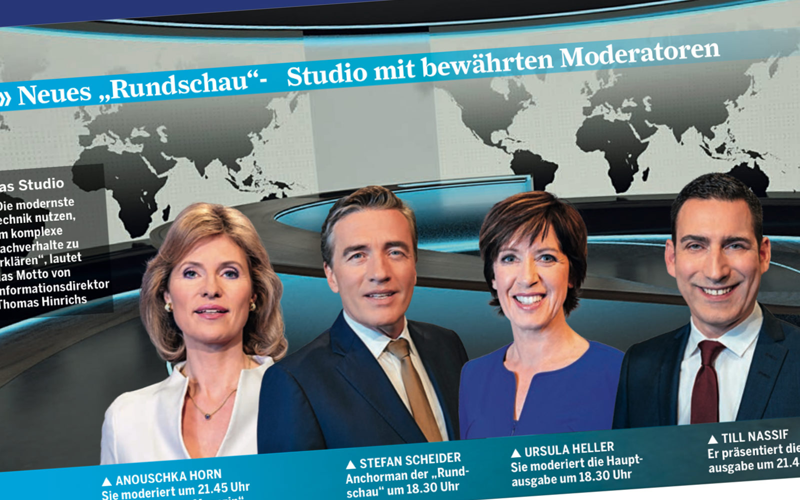 So siehts ungefähr aus: Statt dem Grün unsere Rundschau-Weltkarte – und viele andere Bilder und Szenen.