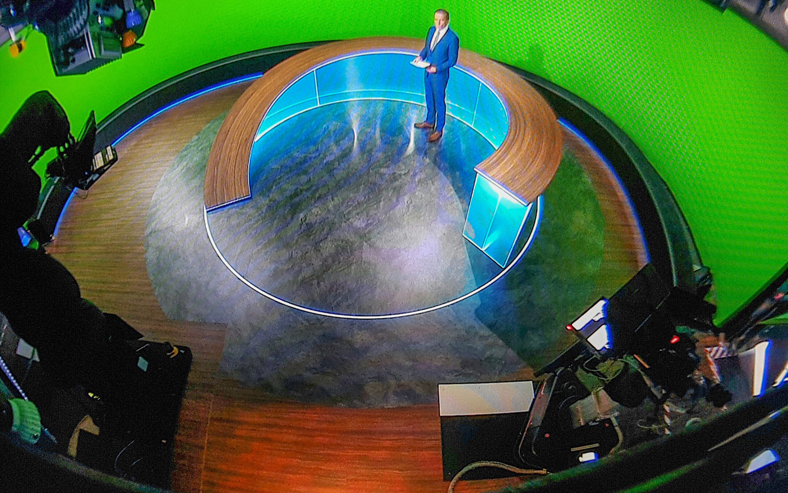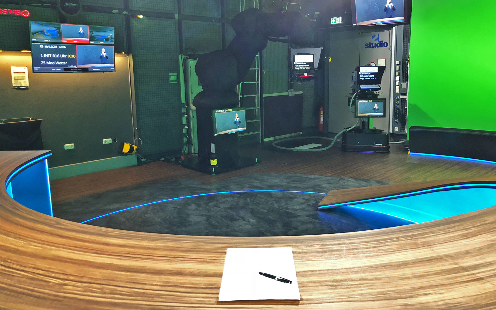 Die Raumkontroll-Kamera fischt das ganze Studio der Rundschau zusammen: Läuft eben rund hier!