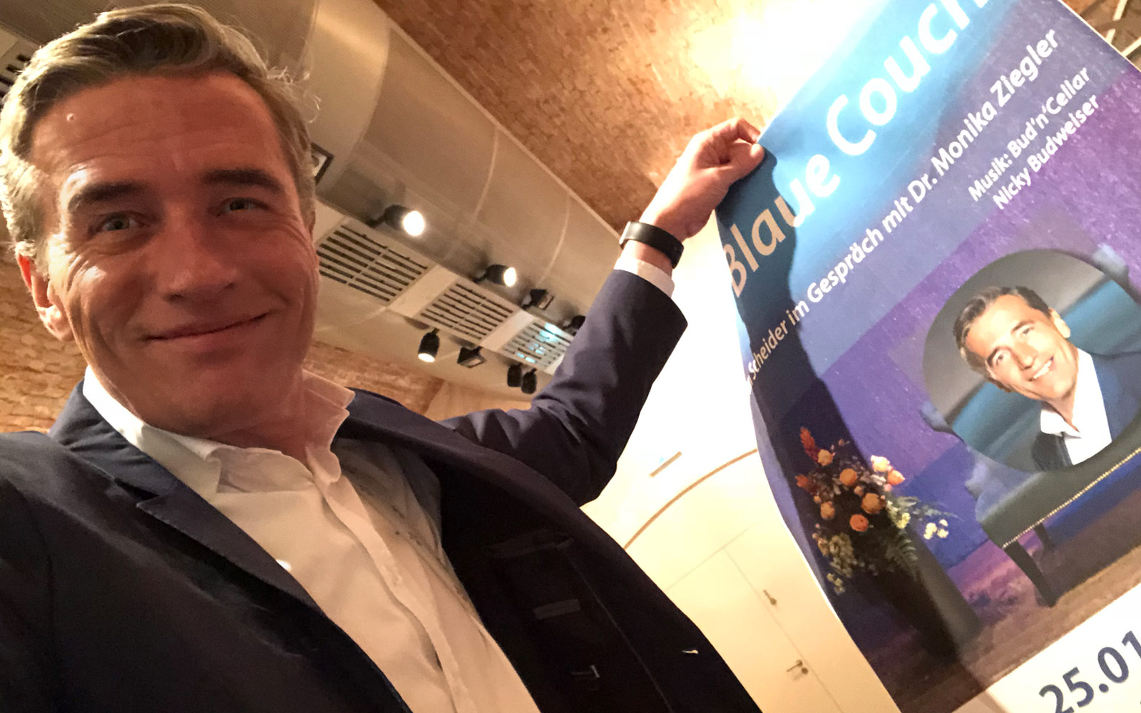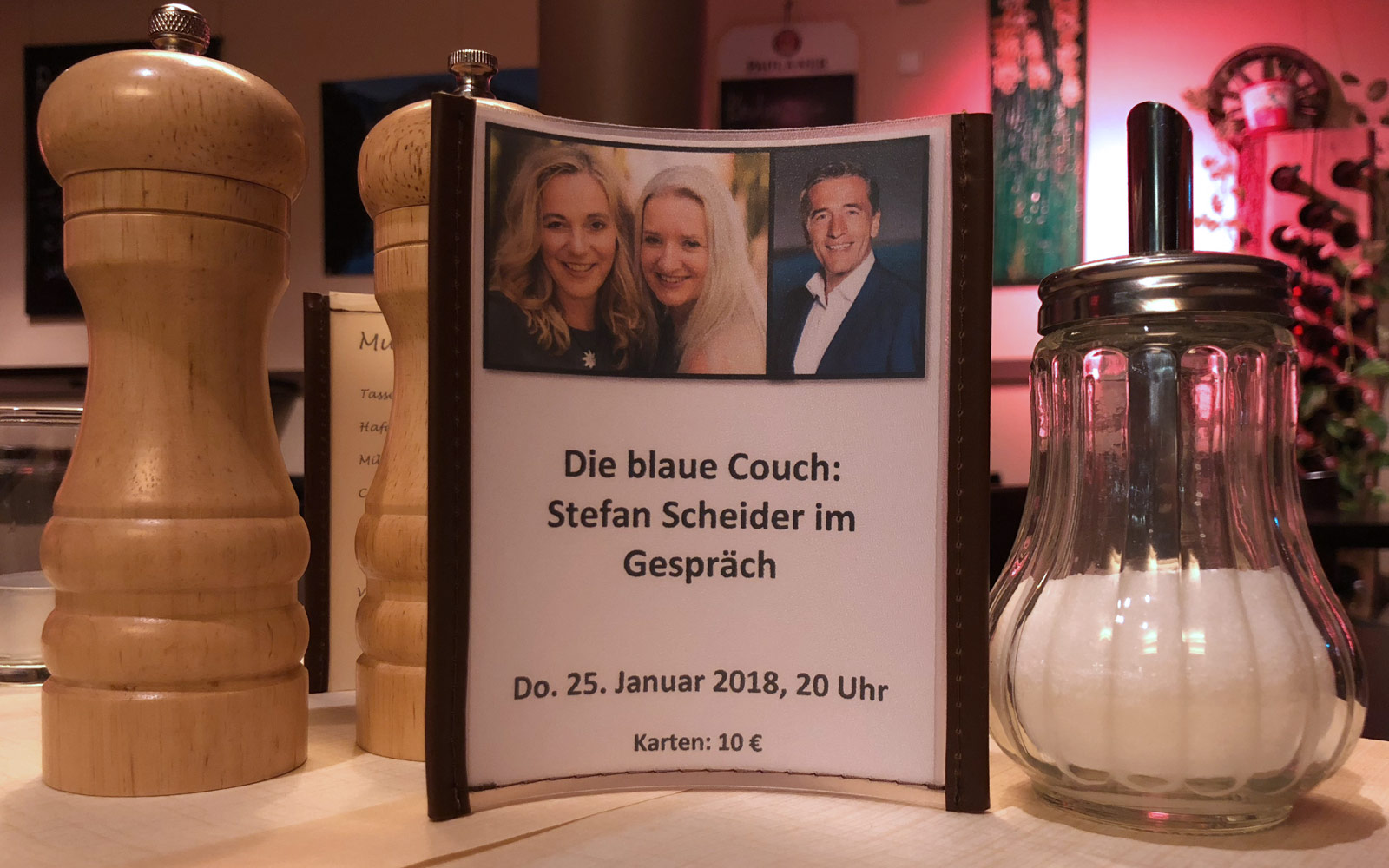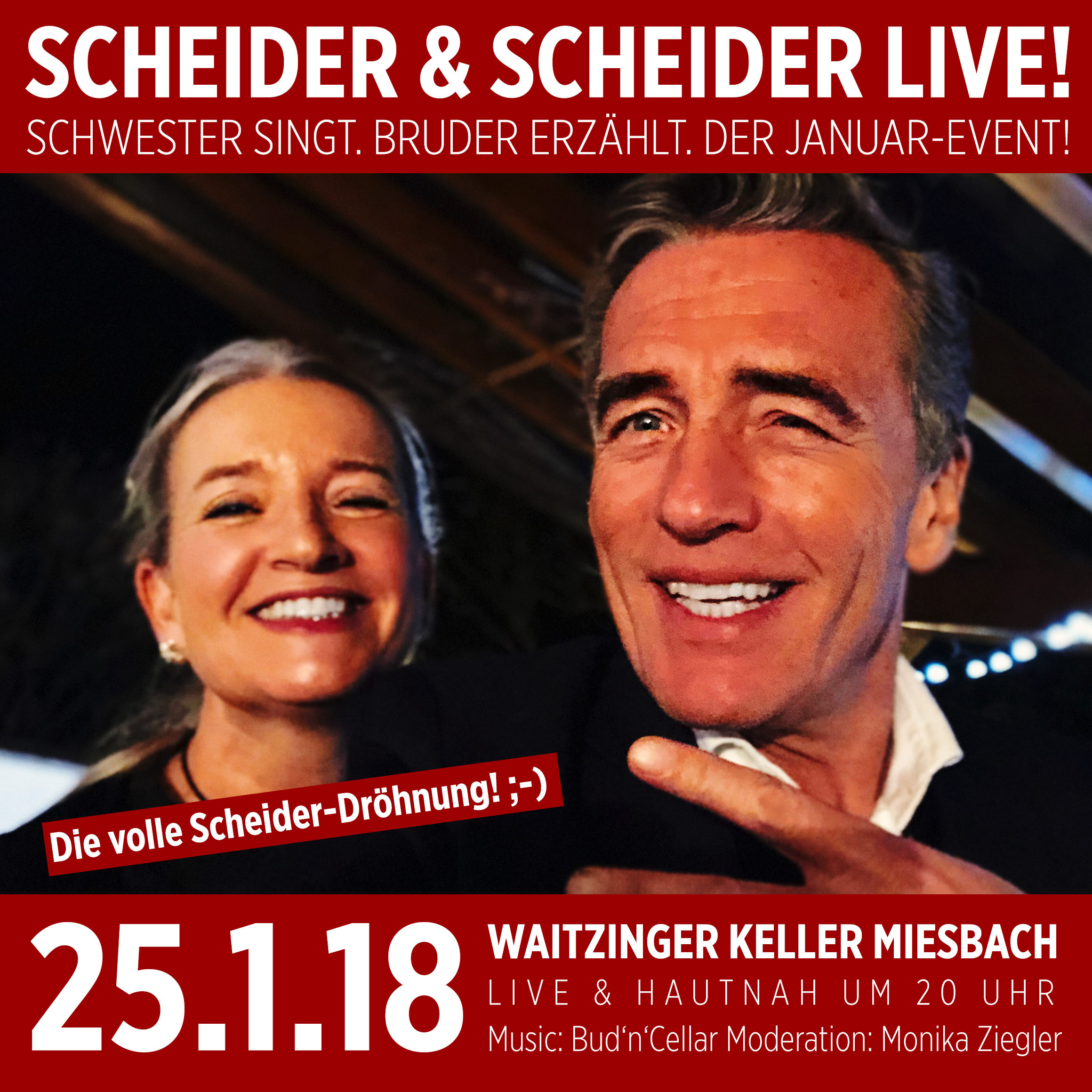 Das gibts nur einmal: Zwei Scheiders auf einer Bühne! Niki (siehe auch „Die singende Schwester“) und Stefan rocken den Waitzinger Keller in Miesbach am 25. Januar 2018! Kulturvisionärin Monika Ziegler hat beide für ihre neue Reihe „Die blaue Couch“ eingeladen. Und bei der zweiten Veranstaltung gibts echte Scheider-Festspiele…;-) Beim Auftakt übrigens war der berühmte Zither Manä zu Gast. Große Fußstapfen also für Stefan. Und der erzählt über seinen Job als Journalist und Moderator, über Fakenews und über sich als Mensch! Am Ende gab es ein wunderbares Feedback – nur Scheider selbst muss ein wenig klagen: Eine Fieberattacke (39 Grad) hat den Auftritt doch etwas geschmälert…;-(
