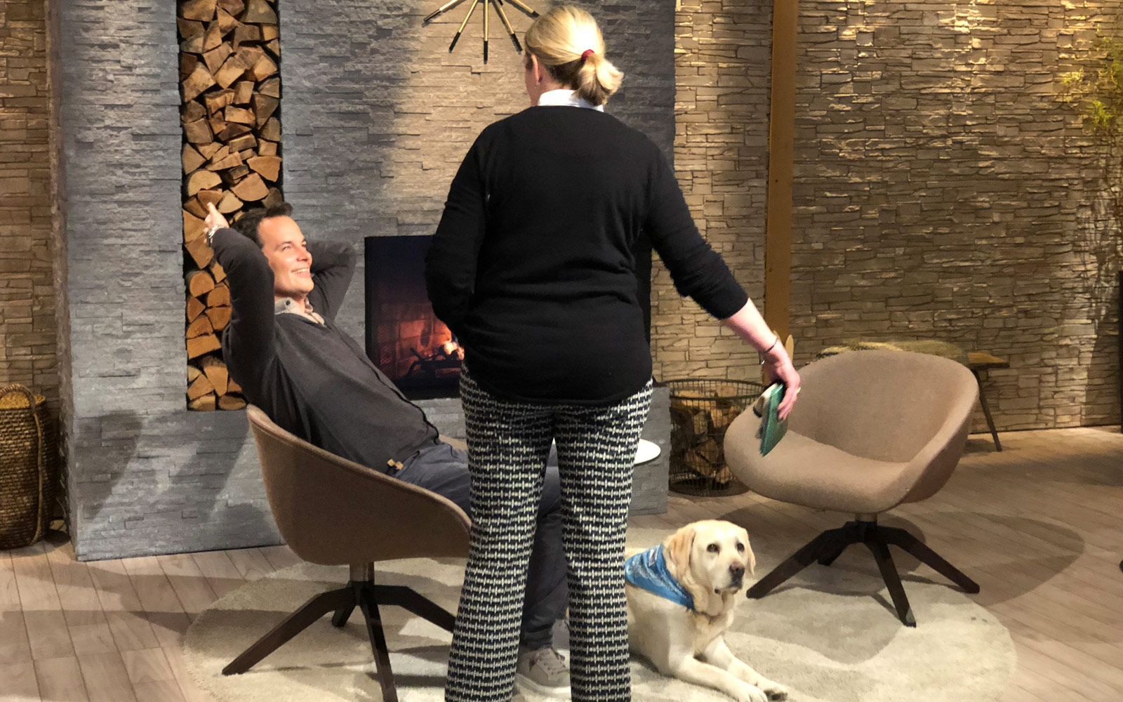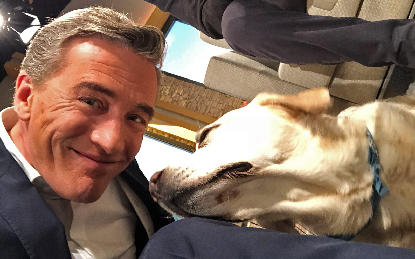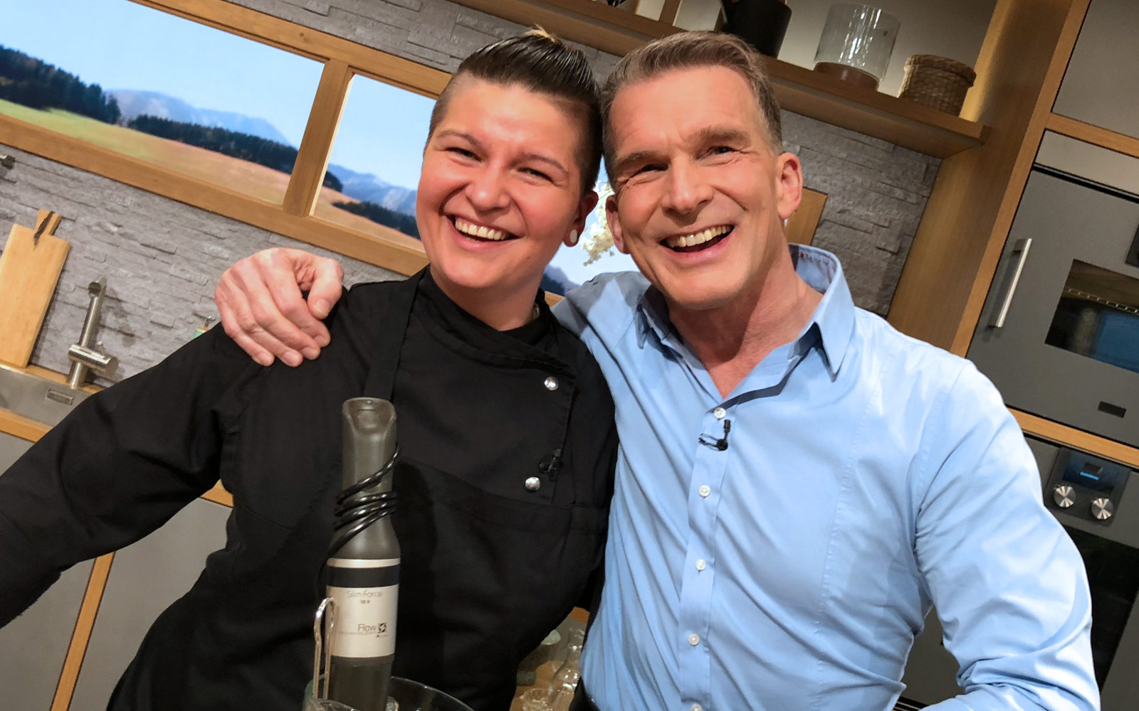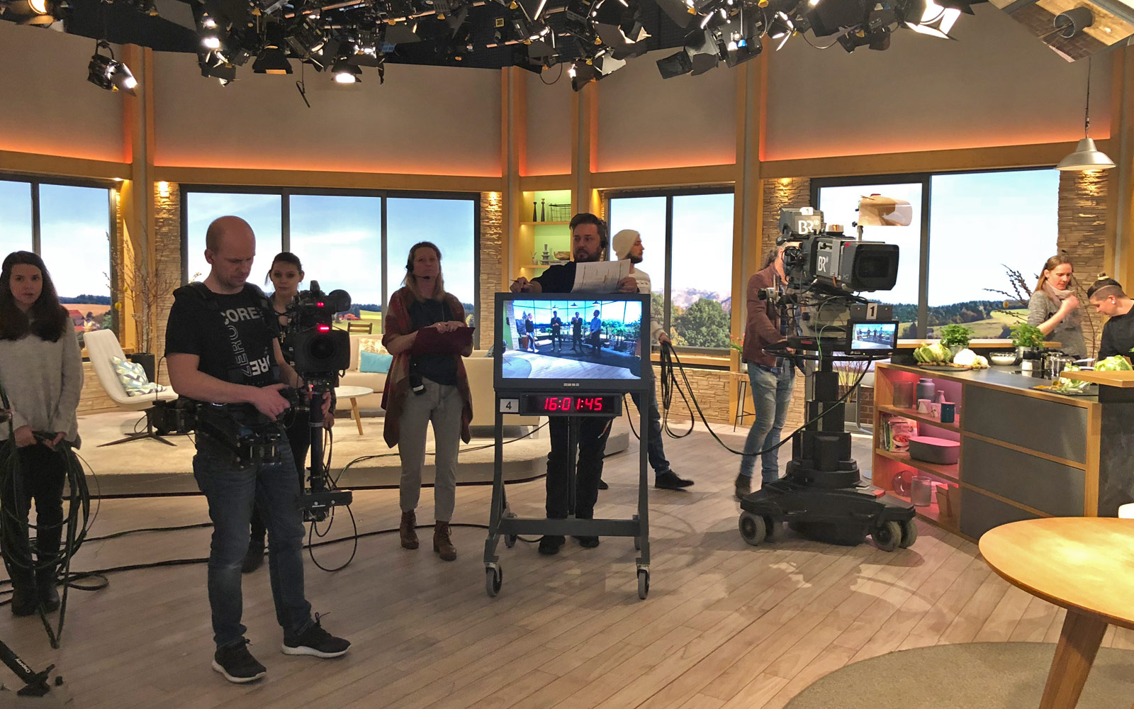 Stefan erscheint am 19. März 2018 im Wir-in-Bayern-Studio – allerdings ein wenig „overdressed“. Für die Übungen von Andrea Sixtus eignet sich der dunkelblaue Anzug mit Hosenträgern und weißem Hemd nur bedingt…;-) Egal, wir starten die Sendung um 16.15 Uhr gleich mal mit Hüpfen, Drehen und Dehnen! Und schon macht es „zoing!“ und ein Hosenträger löst sich mitten in der Übung! Hat aber zum Glück niemand gemerkt…