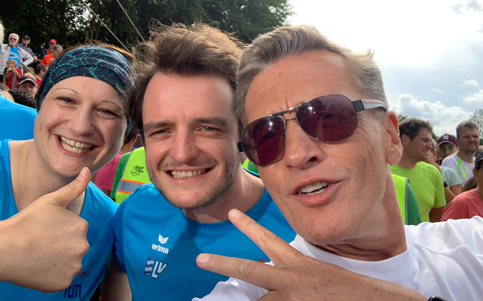 Auf den ersten Blick sieht die Laufzeit ziemlich lahm aus. Aber aber: Wir müssen bissl was abziehen. 2 Minuten Interview auf der Strecke – und gut 1 Minute zu spät gestoppt. Bleiben also sowas um die 1:13! Und das mit Männerschnupfen…;-)