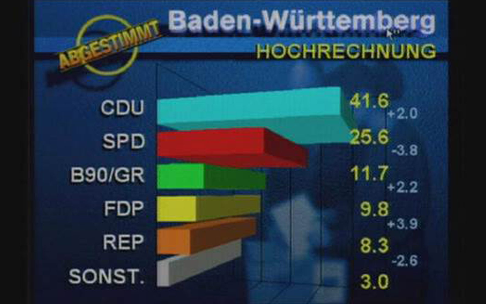Stefans erste Wahlsendung läuft 1994 über den Schirm – mit selbst programmierter Zahlenschau! Eine Innovation im BR! Modisch allerdings wurde es in den späteren Jahren zum Glück besser…;-)
