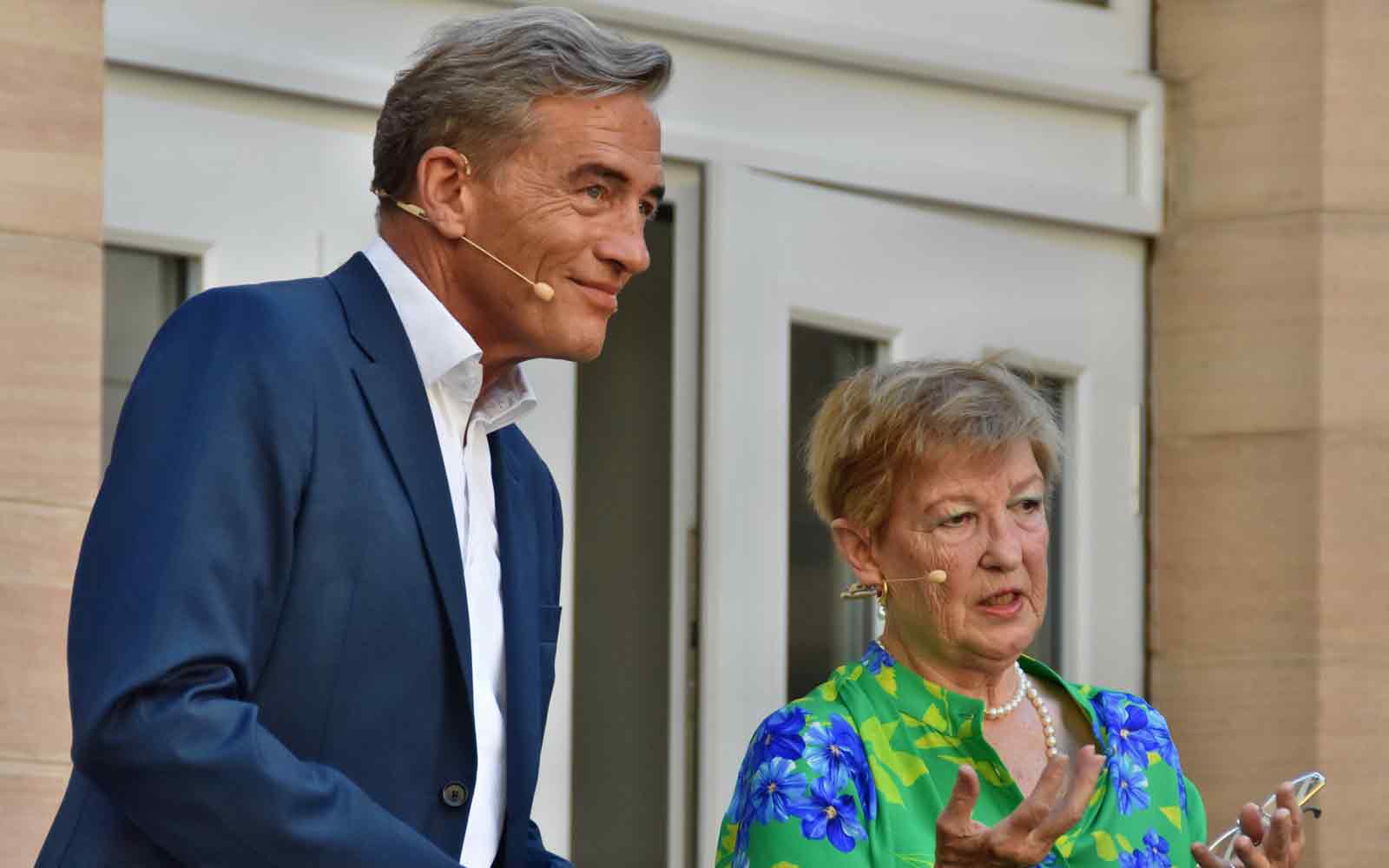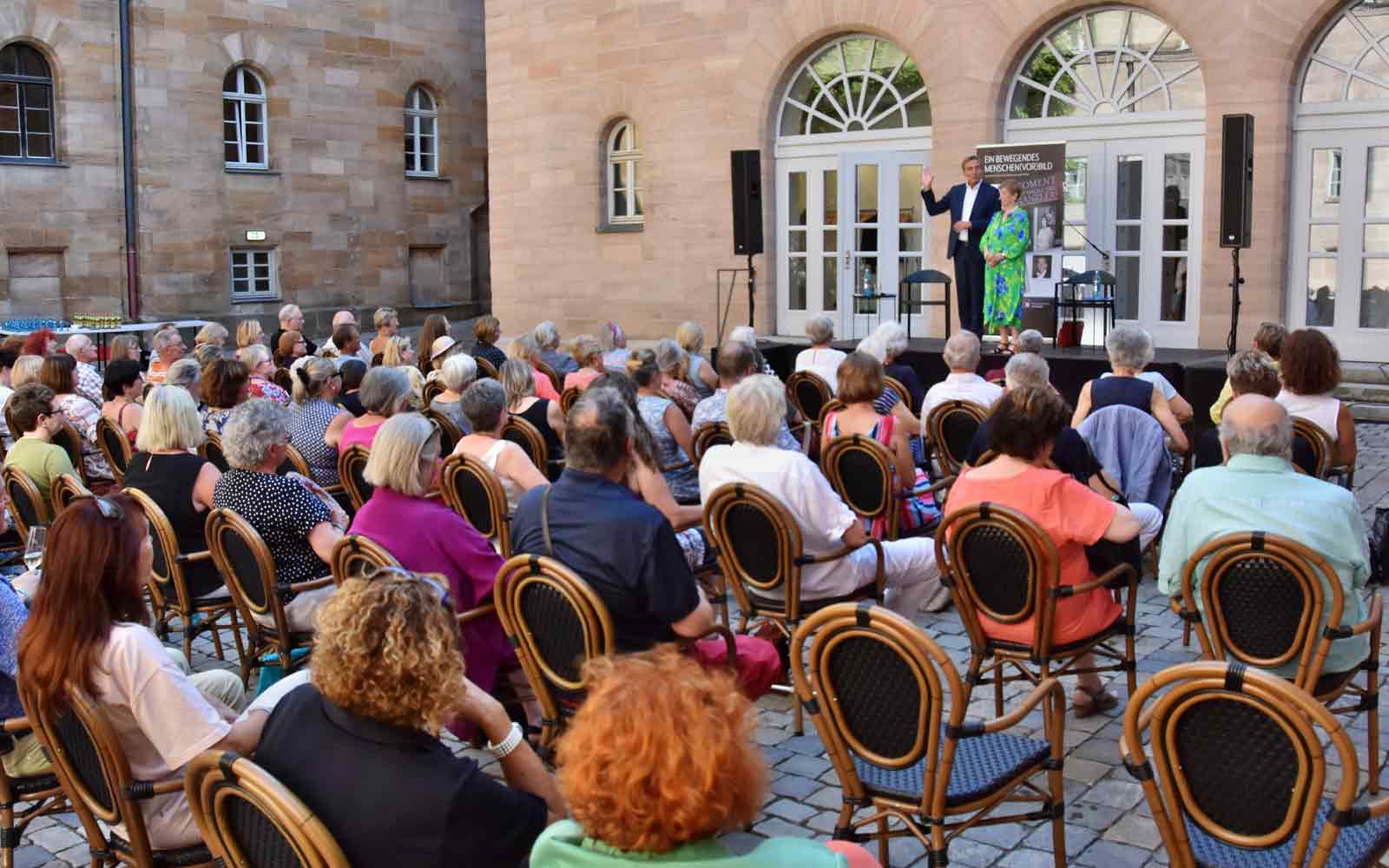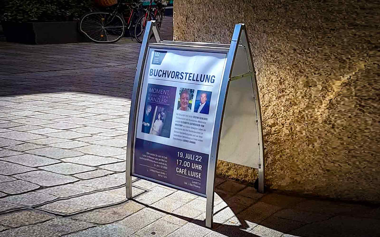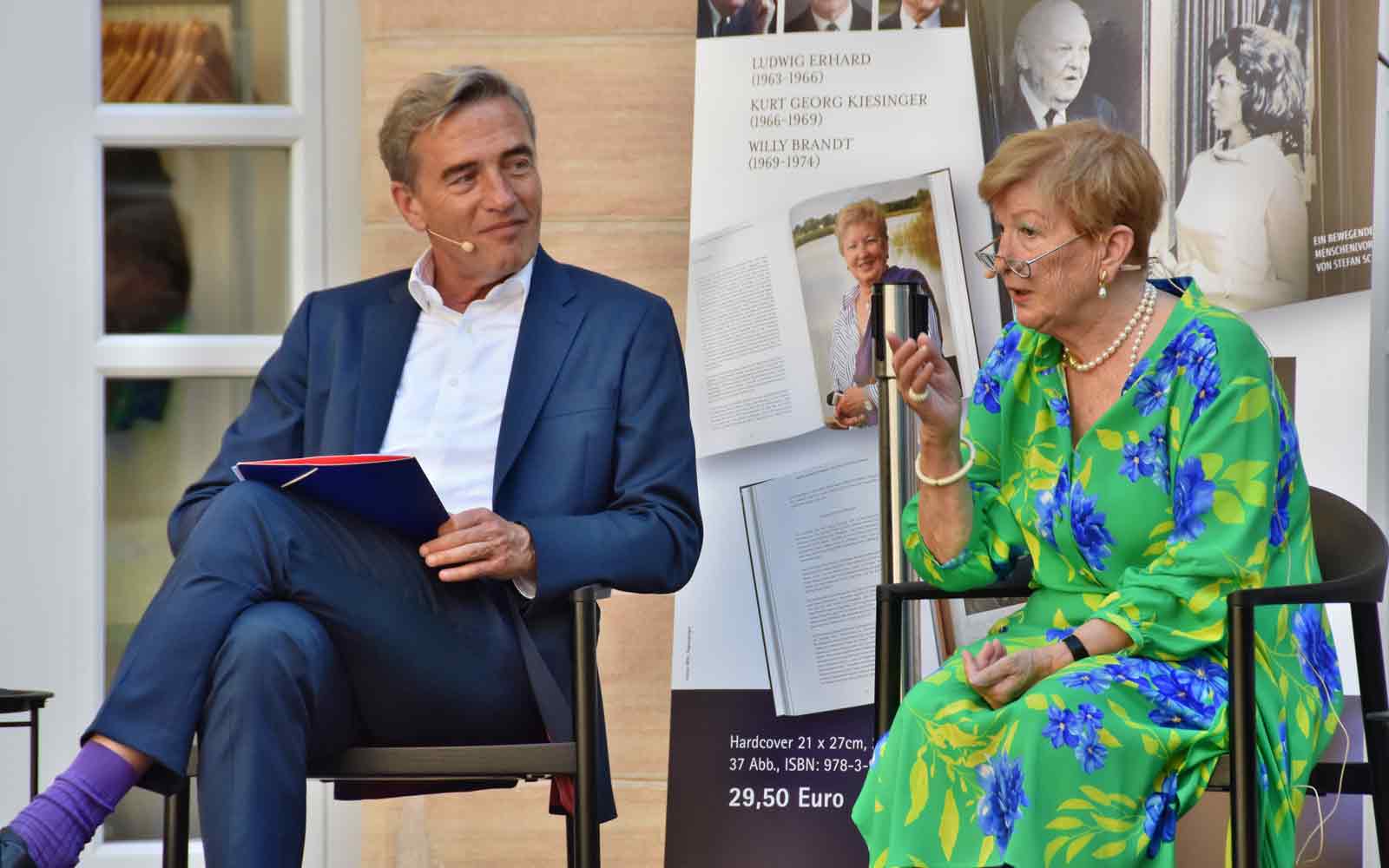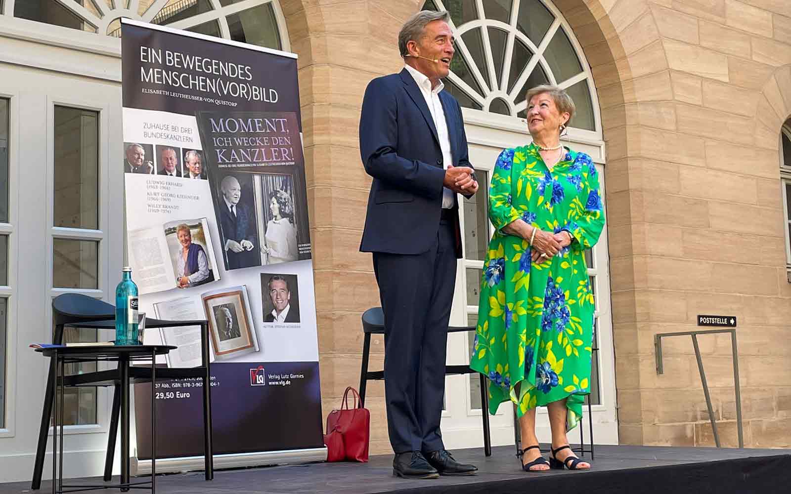 Nach zwei Anläufen (wegen Corona ausgefallen) klappt es beim dritten Mal: Elisabeth Leutheusser-von Quistorp und Stefan Scheider lesen aus den Memoiren der „Kanzler-Nanny“ vor! Live in Fürth am 19.7.2022 um 17 Uhr, als es gerade mal schlappe 37 Grad im Schatten hat… trotzdem kamen doch stolze 150 Menschen! Veranstaltet hat die Lesung das Ludwig Erhard Zentrum – gleich neben dem Fürther Rathaus!