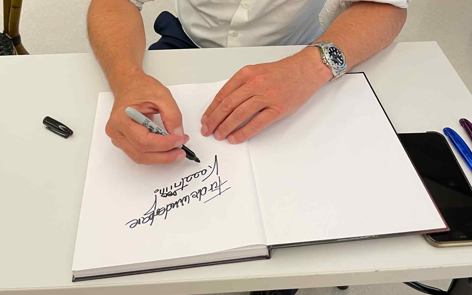 Viele Bücher liegen bereit – fertig für unsere Unterschriften!