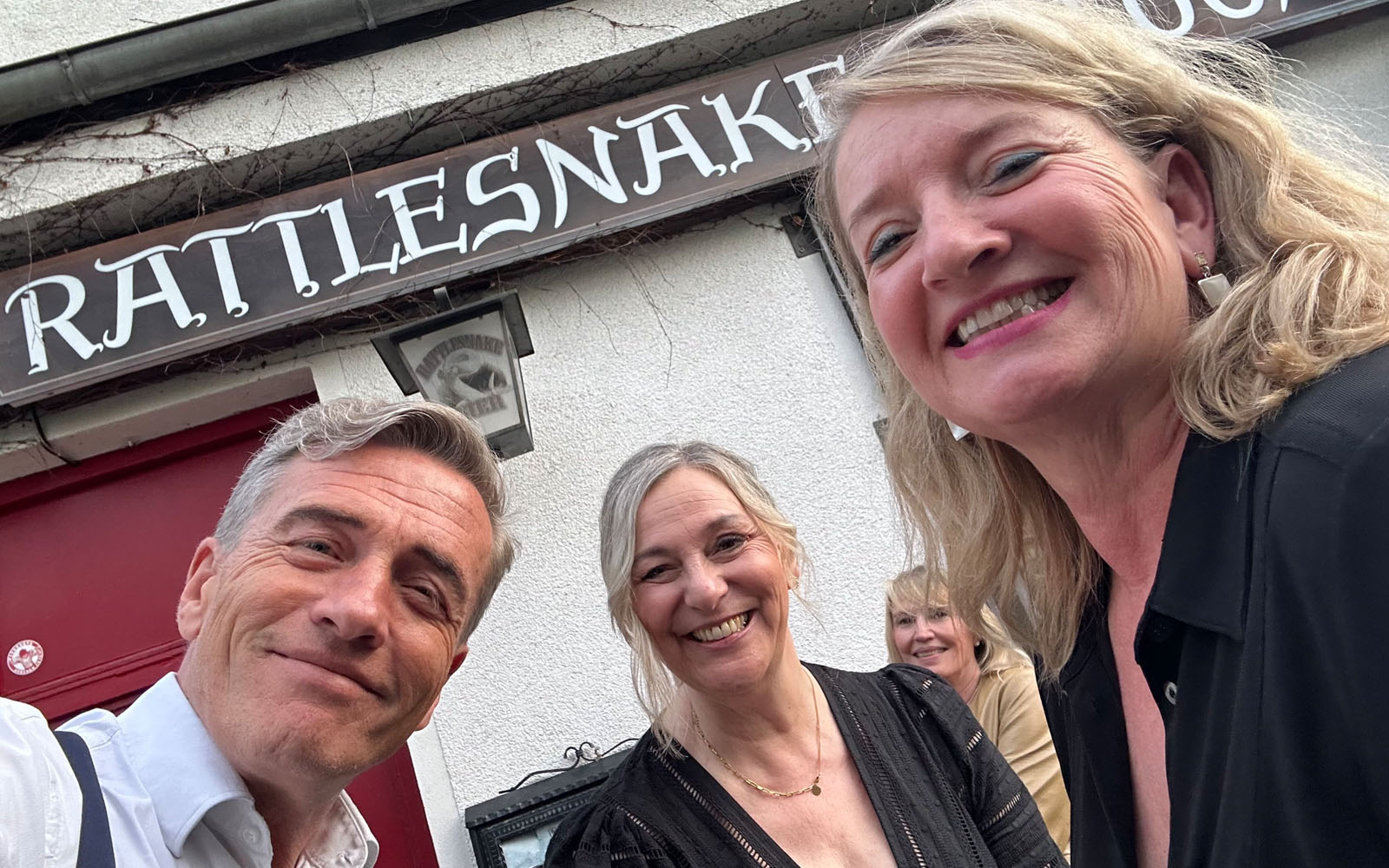 30. April 2023. Boah – der ehrwürdige Rattlesnake Saloon in München-Moosach ist ausverkauft – und der Laden ist brummvoll, als erstmal Bud’n’Cellar die Bühne rockt. Dann Licht aus, Beamer an: Stefans Bandvideo startet! Also nach der Überwindung einiger technischer Hürden…;-)