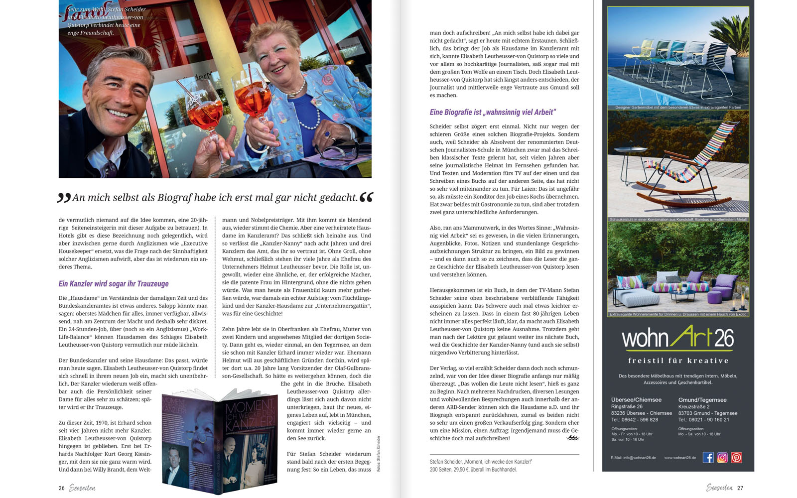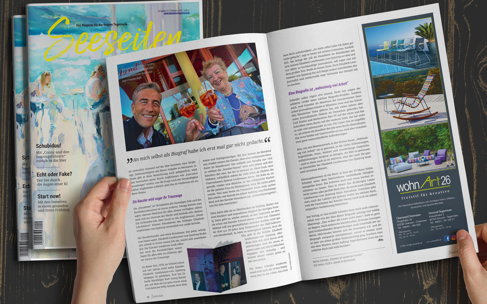 Wow, die Tegernseer Seeseiten rufen an – und wollen einen größeren Artikel über Stefans Biografie schmieden! Große Ehre mal wieder: Ein Sechsseiter mit Bild und Emotions ist da entstanden – und beleuchtet diesmal weniger die Seele von Elisabeth Leutheusser-von Quistorp, sondern mehr Stefans Rolle bei dem Buchprojekt!