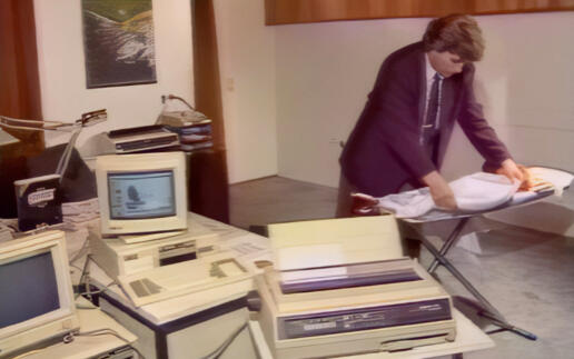 Hemdsärmlig und doch ernsthaft haben wir all die Sendungen gestemmt. Oft bei mir zuhause im Zimmer, manchmal auch in einem Café oder vor einer selbstgebauten Kulisse. Stefan führt neueste PC-Technik vor – und da gabs unerhörte Neuheiten damals, als noch kaum ein Mensch einen Computer besaß. Moderiert wurde natürlich ohne Teleprompter und ehrlich gesagt auch ohne Plan…;-) Aber – wir haben alles in den Kasten bekommen und es hat grob gepasst.