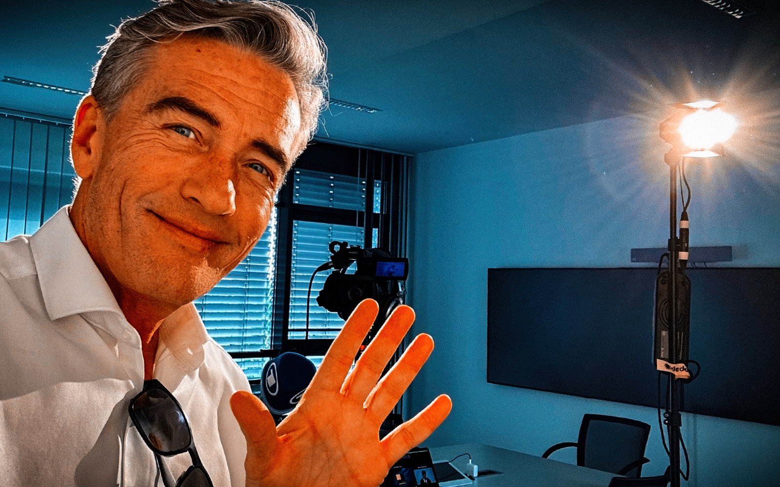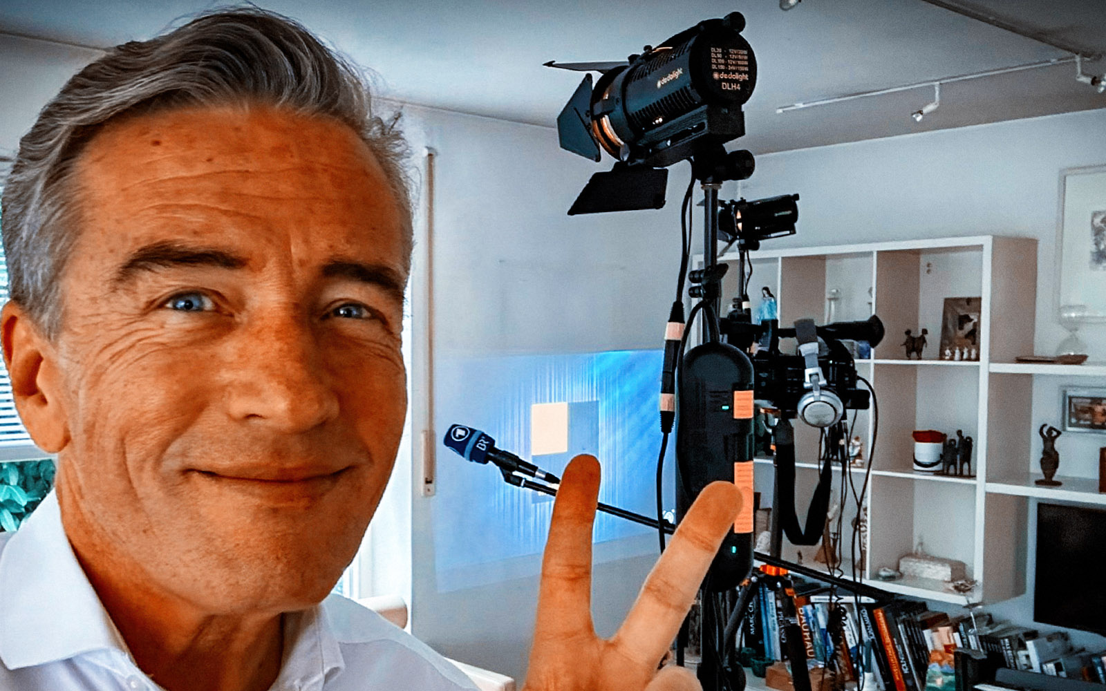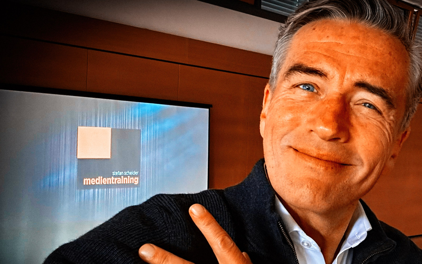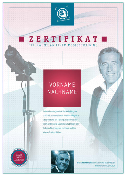 Und so läuft das ab. Ich komme mit einem maßgeschneiderten Training und Equipment zu Ihnen (volle Ausrüstung bei Anfahrt mit Auto, „kleines Besteck“ bei Zugfahrten (Mobil-Kamera, kleines Licht usw.), baue rund eine Stunde auf und wir machen dann drei Stunden auf Sie zugeschnittene Basics, Aufnahmen & Analysen – natürlich auch mit einem Zertifikat! Die Kosten dafür sind stemm- und bezahlbar – und Sie gewinnen bei Ihrer Kommunikation durch die Erfahrungen eines Profis, der seit fast 40 Jahren vor Kameras und auf Bühnen steht!