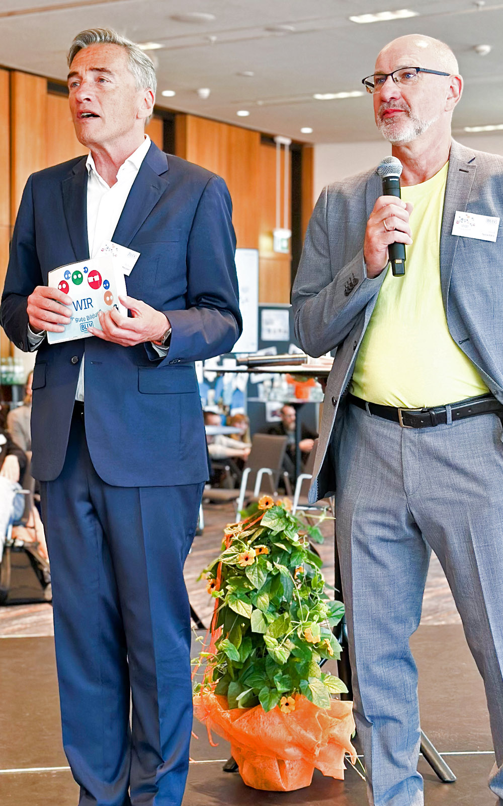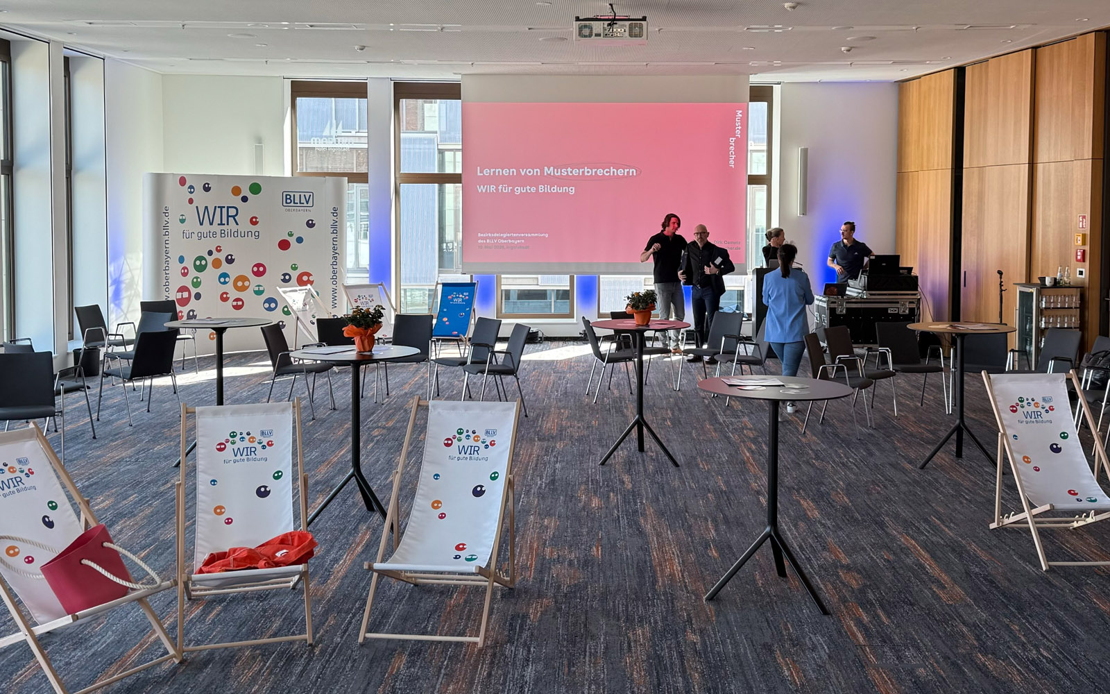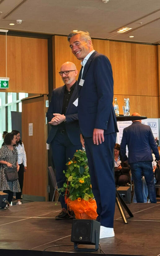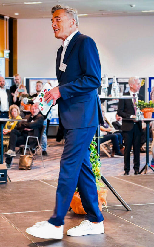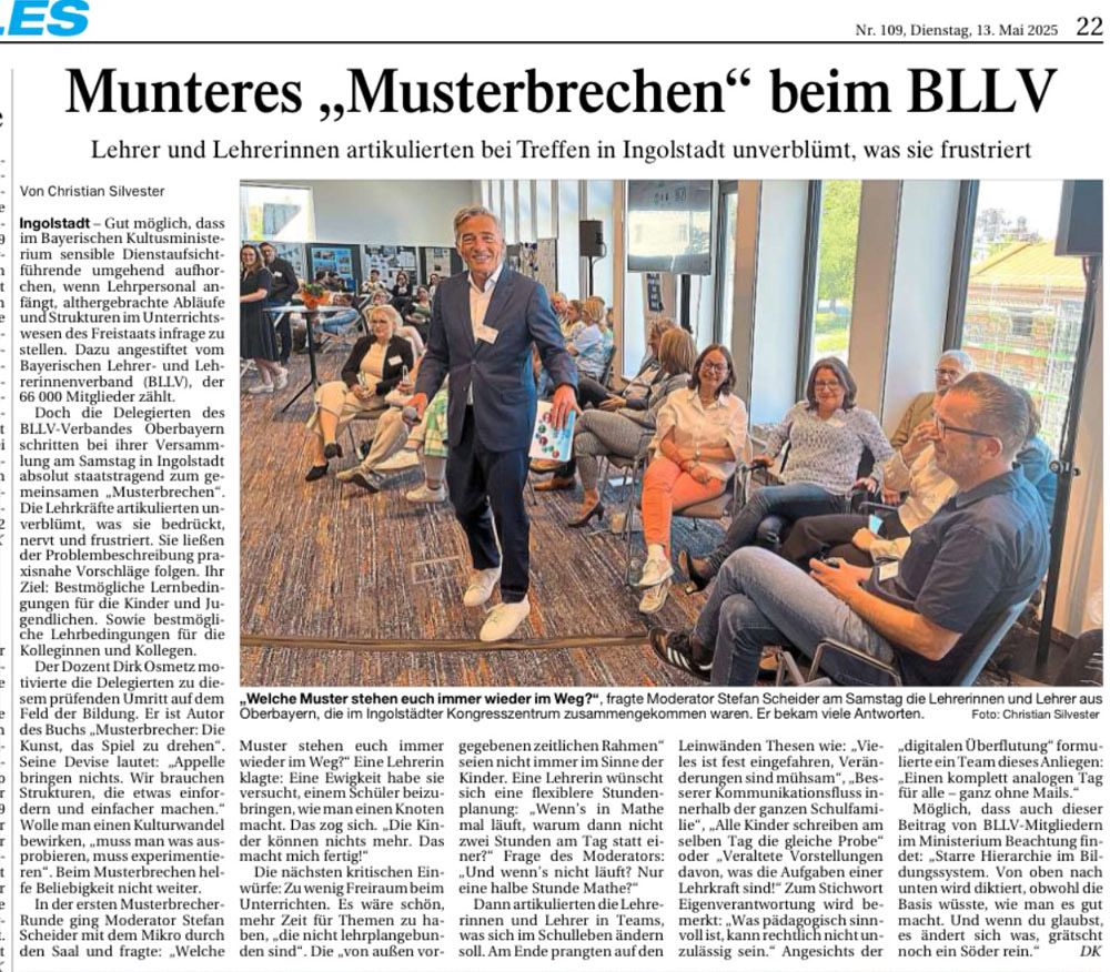 Wenn die bayerischen Lehrerinnen und Lehrer zu einem festlichen Vormittag einladen, muss der Moderator hellwach sein. Denn Gerd vom BLLV Oberbayern wollte keinen braven Festakt mit 50 Grußworten und strenger Bestuhlung, sondern einen Vormittag des „Musterbrechens“. Heißt: Bühne steht mitten im Publikum und selbiges soll möglichst viel mitreden und mitwirken. Auch Bildungs-Politiker sind mit von der Partie. Obendrein befeuert der Keynotespeaker Dirk Osmetz das Programm mit seinem Musterbrecher-Vortrag!