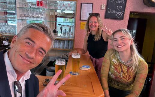 Meine Hostin ist allseits bekannt: Sophia Sailer aus Tiktok, ZDF neo und vielen anderen Podcast-Formaten! Und wow, ist sie mega sympathisch und bodenständig – wir verstehen uns sofort! Dann fällt die Klappe und die Aufzeichnung läuft – rund eine Stunde lang saugen die drei Kameras alles auf. Sophie hat knackige Fragen und wilde Schlagzeilen vorbereitet – Stefan kommt ordentlich ins Schwitzen (draußen hats auch über 30 Grad). Aber – das kühle Alkfrei-Bier vor uns sorgt für ein erfrischendes Gespräch. Und heißer Tipp: Die kleine Kneipe in Giesing ist wirklich eine Boazn – aber eine nette und sympathische…;-)