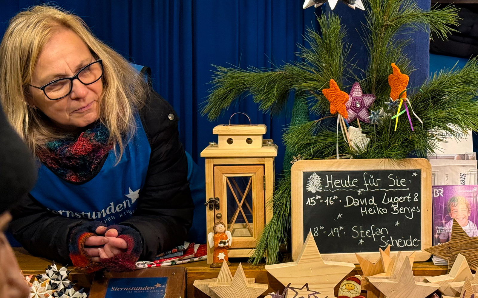 Stand-Chefin Beate staunt am Ende – in der Box ist kaum noch Platz für einen Geldschein! 😉 Herrlich und schön wars wieder – und wenn Stefan nächstes Jahr wiederkommen darf, immer gern! Denn für Kinder in Not der Sternstunden steht mein Herz immer sperrangelweit offen…
