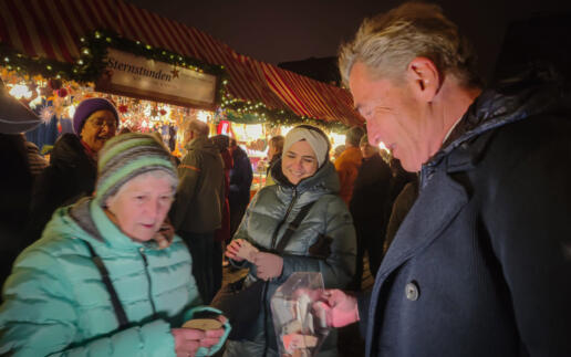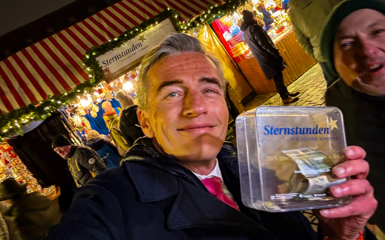 Endlich wieder am Start auf dem Nürnberger Christkindlesmarkt: Stefan sammelt eine Stunde lang für die Sternstunden! Immer ein „Termin“ mit Herzblut und Passion: Kinder in Not helfen, wenn es einem selbst gut geht! Und das haben die Passanten sofort verstanden – und ihre Geldbeutel gezückt. Wow, vielen Dank an alle edlen Spenderinnen und Spender!