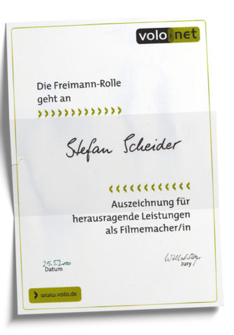 Scheider ist kein Preisjäger. Er macht Filme fürs Publikum – und nicht für Jurys. Aber wenn dann mal ein Preis winkt, freut er sich natürlich. Zum Beispiel beim Deutschen Wirtschaftsfilmpreis, einmal 1. Platz, einmal 2. Platz. Und auch die BR-Volos fanden Scheiders Arbeit schon auszeichnungswürdig!